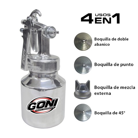 PISTOLA GONI BAJA PRESIÓN, CON VASO DE 1 L 4 USOS EN 1
